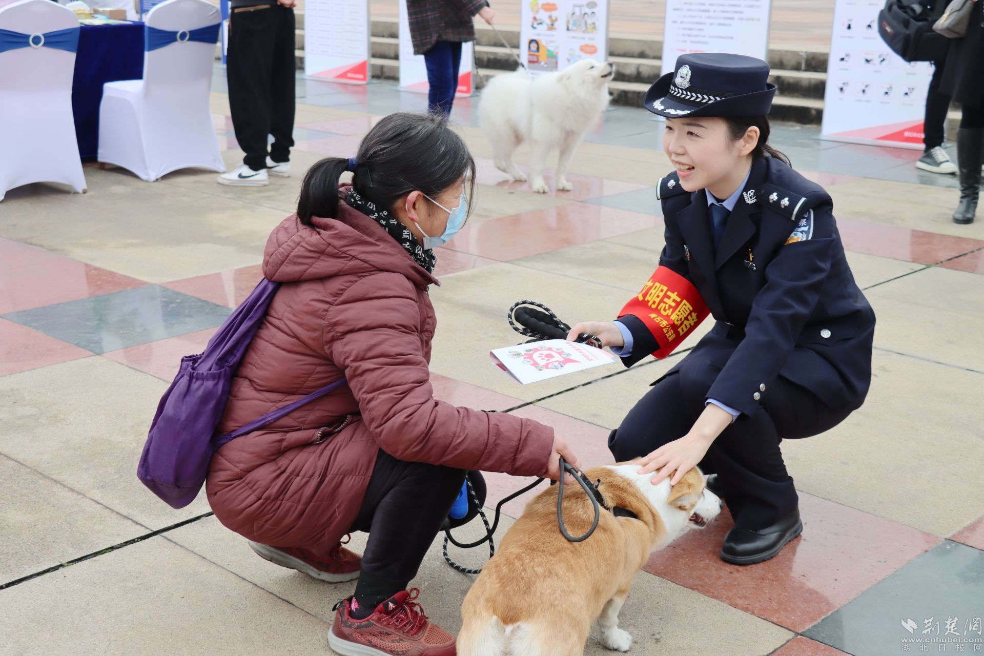 為市民發(fā)放文明規(guī)范養(yǎng)犬宣傳冊。劉璐 攝