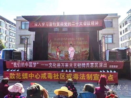 當(dāng)天,浠水縣楚劇團(tuán)到該村開(kāi)展送戲下鄉(xiāng)活動(dòng),現(xiàn)場(chǎng)群眾絡(luò)繹不絕,浠水縣公安局禁毒大隊(duì)聯(lián)合散花鎮(zhèn)中心戒毒社區(qū)借活動(dòng)演出時(shí)機(jī),在現(xiàn)場(chǎng)開(kāi)展毒品預(yù)防宣傳教育活動(dòng),共發(fā)放宣傳資料200余份,解答相關(guān)咨詢(xún)30余人。