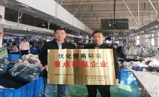 此前,英山縣紀(jì)委監(jiān)委“護航”行動專班在對全縣重點企業(yè)進行走訪時,湖北如普帽業(yè)有限公司反映該公司門口的“優(yōu)化營商環(huán)境重點護航企業(yè)”牌匾是2020年5月懸掛的,因常年風(fēng)吹日曬,導(dǎo)致字跡斑駁不清。隨后,該縣紀(jì)委監(jiān)委將這一問題納入工作臺賬,立即協(xié)調(diào)重新制作牌匾,于是便有了開頭“換牌”的一幕,這也是該委深化“護航行動”的一個生動體現(xiàn)。