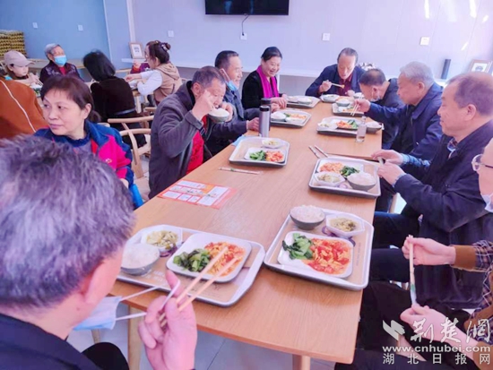 目前食堂提供小炒、湯類等各種美食,價(jià)格從幾元到幾十元不等,還有9元一葷一素、12元兩葷一素的福利套餐?!安似啡澦卮钆?、營養(yǎng)健康、少鹽少油,非常適合我們老年人的口味!”“政府關(guān)心我們老年人,這是一件惠民工程啊。”轄區(qū)老年人圍坐在一起吃飯,幸福的笑容洋溢在他們臉上。