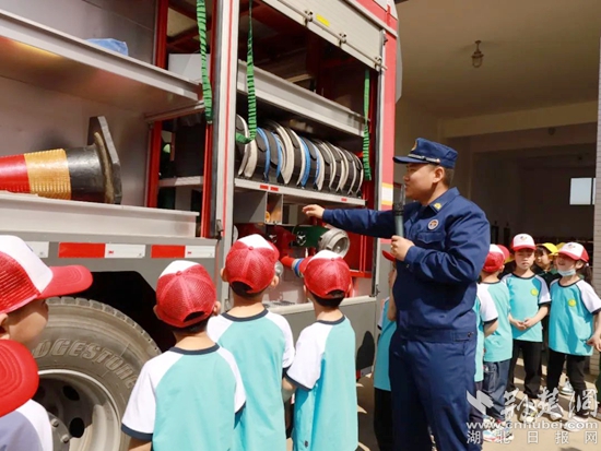 “車上都是我們常用的救援工具,別看它們體積小,作用可大著呢!”在消防員細致地講解下,孩子們認識了各類消防車輛和裝備器材,了解它們在滅火救援任務(wù)中的用途。