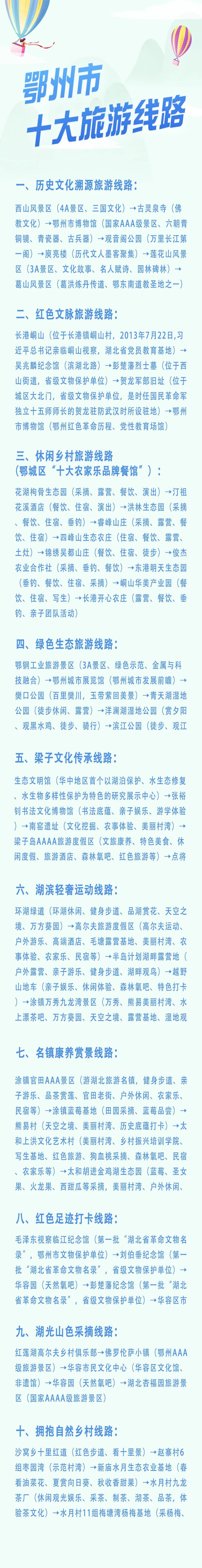 本次旅游周(5月19日-25日)還將舉辦各類主題活動,與全城人民相約,共同欣賞和感受鐘靈毓秀的自然風(fēng)光、多姿多彩的人文底蘊(yùn)、日新月異的城鄉(xiāng)發(fā)展,以及69萬鄂城人民美好生活的幸福圖景。