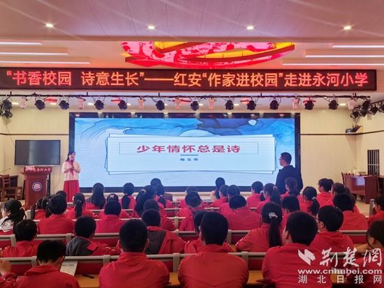 荊楚網(wǎng)(湖北日報網(wǎng))訊(通訊員毛紅平 董改 劉志勇)5月24日,紅安縣文聯(lián)、紅安縣作家協(xié)會組織作家走進永河小學,開展一場主題為“名作家小作者、大手牽小手、作家進校園”的文學志愿服務活動。旨在培育文學人才,推進全民閱讀,弘揚詩歌文化,在校園播下文學的種子。