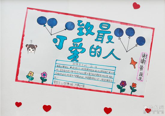 “這幅畫送給黃醫(yī)生。”小明因為支氣管炎接受了一周的住院治療,他在兒科病房內(nèi)用顏料、紙張和畫筆,畫了自己和兒科主任黃佳林主任的合照,準(zhǔn)備在出院時送給醫(yī)生。