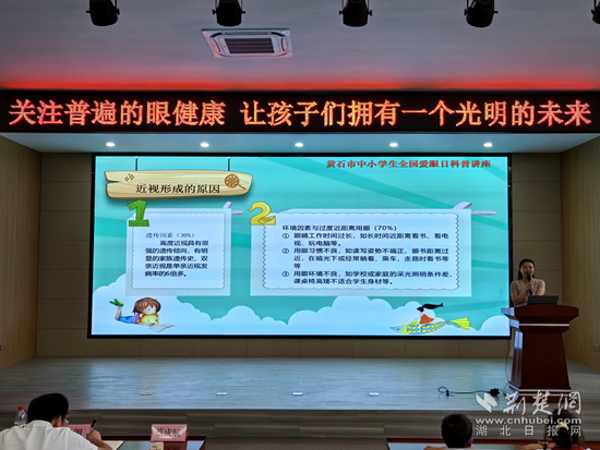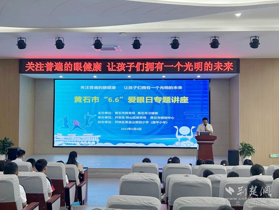 當(dāng)天,由黃石市教育局、黃石市衛(wèi)健委主辦,開(kāi)發(fā)區(qū)·鐵山區(qū)教育局承辦的“6·6全國(guó)愛(ài)眼日——關(guān)注普遍的眼健康”科普教育講座活動(dòng),在黃金山第四小學(xué)舉行。