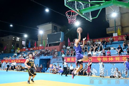 荊楚網(wǎng)(湖北日報(bào)網(wǎng))訊(記者 左乙辰 通訊員 張友江)“巖峰隊(duì),加油!加油,巖峰隊(duì)!”6月13日晚,大冶市靈鄉(xiāng)鎮(zhèn)第二屆(翊通杯)“鎮(zhèn)BA”在靈礦社區(qū)裝飾一新的燈光球場舉行,來自全鎮(zhèn)的12支參賽隊(duì)伍參加開幕式,盡管當(dāng)日場內(nèi)氣溫超過30多度,但活動(dòng)依然吸引數(shù)百名籃球愛好者前來觀賽,尤其讓一些“藍(lán)粉迷”扯著嗓門喊加油,更顯得夏日激情四溢。