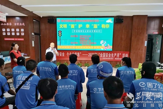 活動(dòng)特別邀請(qǐng)市公安局交通管理局五大隊(duì)一中隊(duì)鳳凰分隊(duì)的趙錦雄為社區(qū)新業(yè)態(tài)新就業(yè)服務(wù)聯(lián)盟成員單位——“餓了么”長江天下站的“藍(lán)騎士”們上了一堂精彩又實(shí)用的交通安全教育課。
