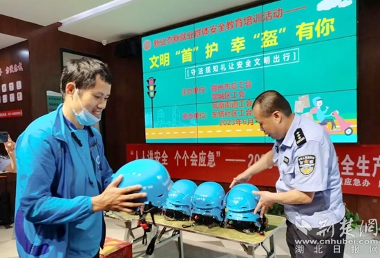 隨后趙警官和社區(qū)志愿者為“藍(lán)騎士”們贈(zèng)送頭盔和愛心防暑飲品,把工會(huì)組織對(duì)新業(yè)態(tài)新就業(yè)群體的濃濃關(guān)愛送到小哥們心間,倡導(dǎo)大家在忙碌的送餐服務(wù)中一定要做到“文明騎行,安全配送”,爭當(dāng)文明交通的維護(hù)者、示范者、宣傳者和引導(dǎo)者,用實(shí)際行動(dòng)為城市文明增光添彩。