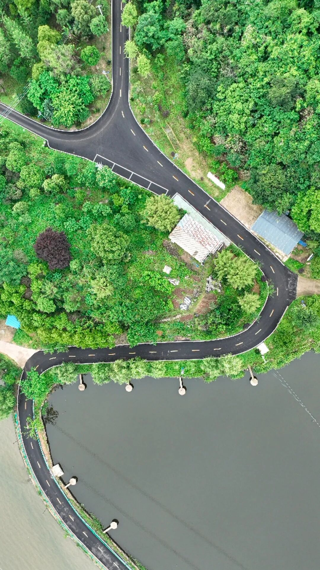 公路蜿蜒盤(pán)繞穿過(guò)叢林水道
