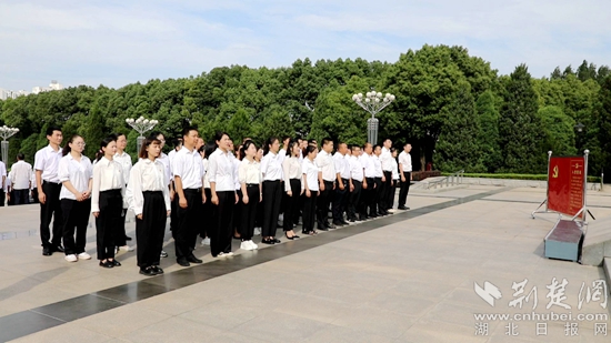 “七一”前夕,在紅安縣黃麻起義和鄂豫皖蘇區(qū)紀(jì)念園革命烈士紀(jì)念碑廣場(chǎng),紅安縣百名新黨員面向鮮紅的黨旗,舉起右拳許下錚錚誓言。