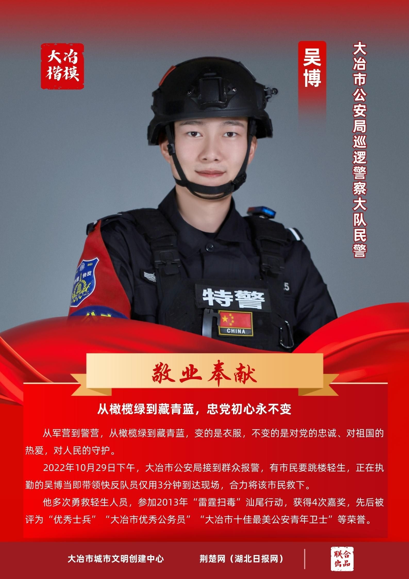 荊楚網(wǎng)(湖北日?qǐng)?bào)網(wǎng))訊(記者 左乙辰 通訊員 姚昭、羅成)以楷模為鏡,與好人同行。近日,2023上半年大冶楷模(好人)名單發(fā)布,王有文、許利、吳博等10人上榜,用各自的感人事跡溫暖了千年銅都,引領(lǐng)著城市的文明風(fēng)尚。