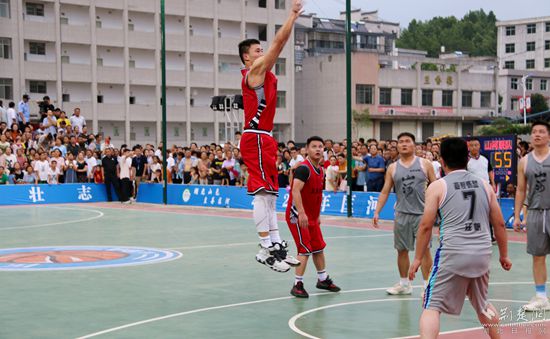 隨著裁判員哨聲響起,施家畈隊(duì)與紅色隊(duì)展開激烈比拼,拉開此次比賽的揭幕戰(zhàn)。球場上,球員們斗志昂揚(yáng);球場下,村民們熱情高漲?!疤柿耍诖院竽芸吹礁噙@樣的比賽?!被@球愛好者鄭森直呼過癮。