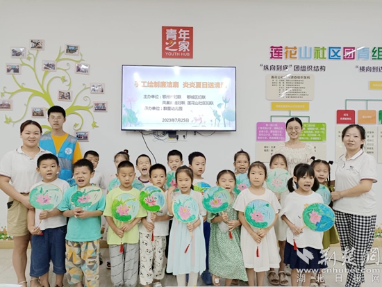 荊楚網(wǎng)(湖北日報網(wǎng))訊(通訊員丁元中)7月25日下午,鄂城區(qū)蓮花山社區(qū)婦聯(lián)聯(lián)合群星幼兒園小朋友們開展以“繪制手工廉潔扇,炎炎夏日送清風(fēng)”為主題的DIY手工廉潔教育活動。讓青少年感受“蓮”文化的魅力,傳遞廉潔之風(fēng)。