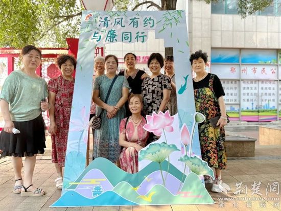 在“沉浸式”聽(tīng)完講解員的講解后,居民朋友在“清風(fēng)有約,與廉同行”廉潔打卡點(diǎn)拍照留念。