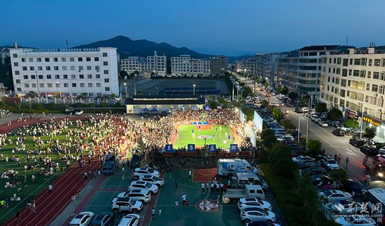球員揮汗拼搏,群眾吶喊助威。本土的舞動青春舞蹈隊帶來的籃球啦啦操《紅日》,氛圍感拉滿;拆盲盒游戲環(huán)節(jié),茶油、瓜果、雪花粑、天堂寨門票等“接地氣”的特色獎品吸引現(xiàn)場觀眾踴躍參加;當(dāng)《海闊天空》熟悉的旋律響起時,全場手機閃光燈隨著節(jié)奏舞動,齊聲合唱,瞬間將現(xiàn)場的氣氛帶到了高潮,天空中燃起璀璨的煙花,燃爆匡河夏日夜。