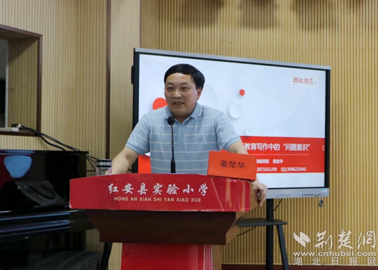 下午,《湖北教育》執(zhí)行主編、高級教師姜楚華作題為《問題是我們的朋友——談?wù)劷逃龑懽髦械摹皢栴}意識”》的主題講座。他從問題意識的表現(xiàn)形式、問題意識的培植方式、問題意識與寫作等三個方面深入講解,借助生動的案例與深厚的積淀,引導(dǎo)大家大膽質(zhì)疑、主動思考、積極創(chuàng)新,將“問題意識”轉(zhuǎn)化為教育寫作新視角、新動能與新成果。