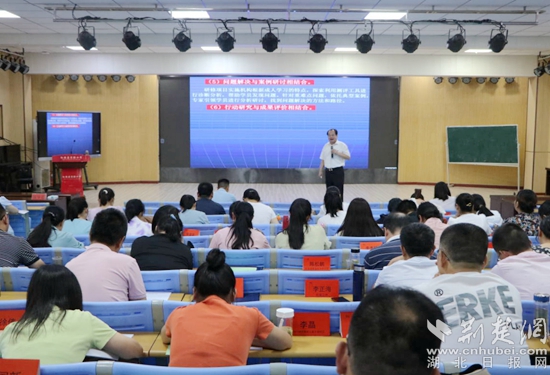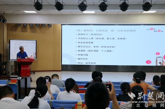 8月16日上午,黃石八中總校長、特級教師、正高級教師郭茂榮作題為《務(wù)教育之本 悟成長之道—教師工作坊建設(shè)的實(shí)踐與思考》的主題講座。他通過成長經(jīng)歷和典型案例,運(yùn)用風(fēng)趣的語言深刻詮釋了“立德樹人是教育之本,知其心是教師之本,悟其道是成長之要”,還交流了教師工作坊建設(shè)、運(yùn)行、管理、評價(jià)等方面的經(jīng)驗(yàn)。