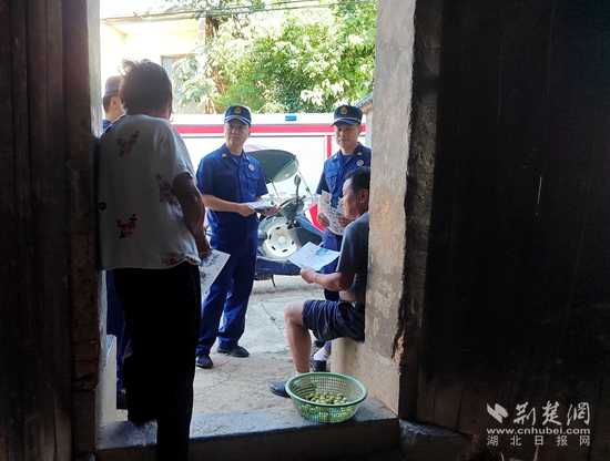 在太子鎮(zhèn)村四門村,消防宣傳員現場以“案例+條例”的方式,對村民警示因祭祀引發(fā)居民火災、野外火災、山火的危害性,面對面教授群眾如何處置野外初期火災,如何逃生自救等消防安全知識,并發(fā)放《消防安全常識宣傳手冊》等消防宣傳資料。