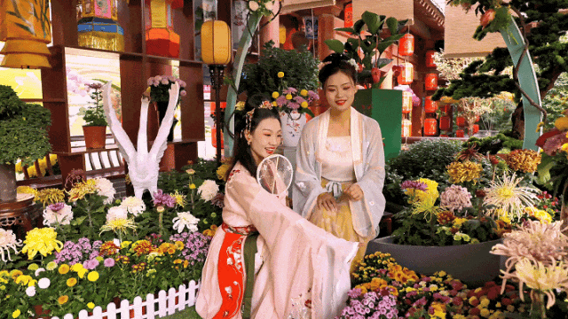 花式體驗讓賞菊更好玩01萬套宋裝免費穿:穿上免費宋裝,深度體驗“我在宋朝的一天”,當(dāng)宋風(fēng)宋韻與百萬菊展相遇,賞菊意境更加唯美。