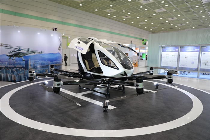 “智慧生活周”博覽會上展出的低空飛行器。人民網(wǎng)記者 莽九晨攝