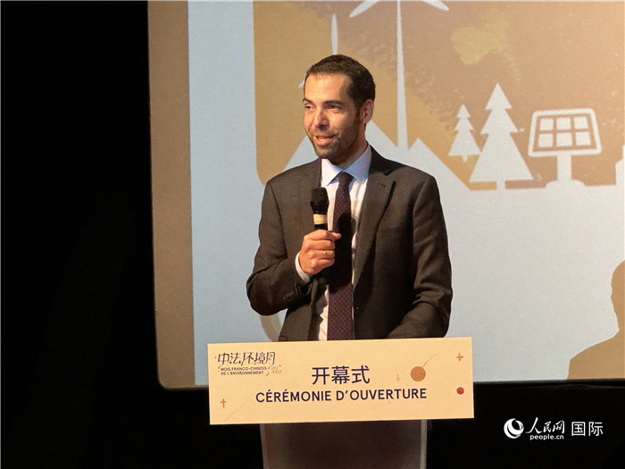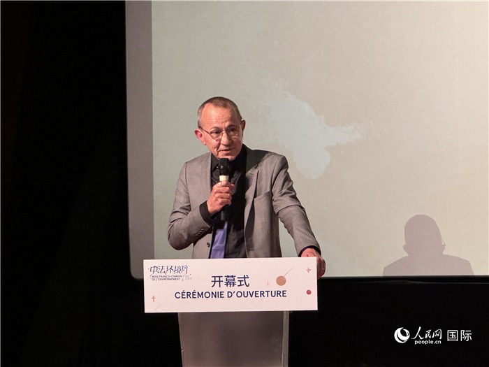 法國(guó)駐華使館文化、教育與科學(xué)事務(wù)公使銜參贊裴國(guó)良介紹第十一屆中法環(huán)境月活動(dòng)。人民網(wǎng) 謝瑩攝