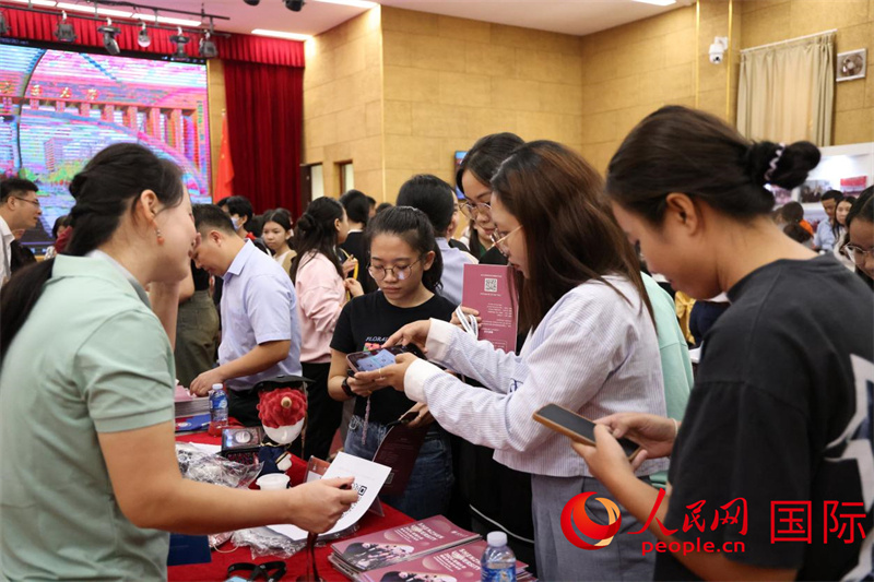 活動(dòng)現(xiàn)場(chǎng),老撾學(xué)生向中國(guó)高校代表咨詢。人民網(wǎng)記者 楊一攝
