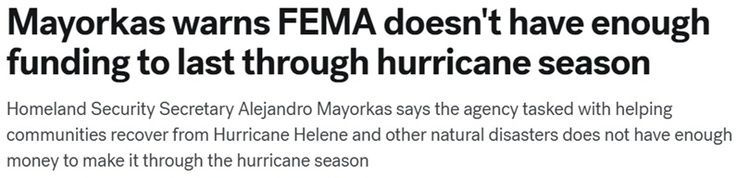 與此同時(shí),共和黨總統(tǒng)候選人、前總統(tǒng)特朗普及其支持者借機(jī)抨擊拜登和哈里斯把錢(qián)都用在了對(duì)外軍援和幫助非法移民上,導(dǎo)致美國(guó)聯(lián)邦緊急事務(wù)管理局救災(zāi)經(jīng)費(fèi)嚴(yán)重不足,而且“故意不援助”共和黨選民集中的災(zāi)區(qū)。