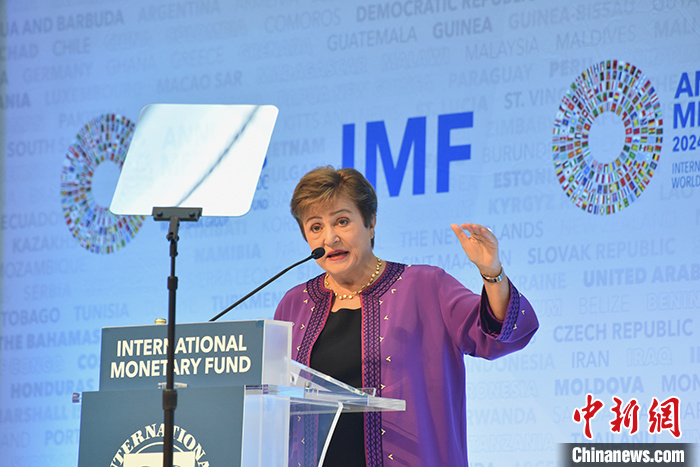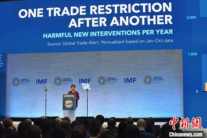 當(dāng)?shù)貢r(shí)間10月17日,國際貨幣基金組織(IMF)總裁格奧爾基耶娃在華盛頓發(fā)表講話說,未來低增長(zhǎng)和高債務(wù)并存的局面將給全球經(jīng)濟(jì)帶來壓力。 中新社記者 沙晗汀 攝