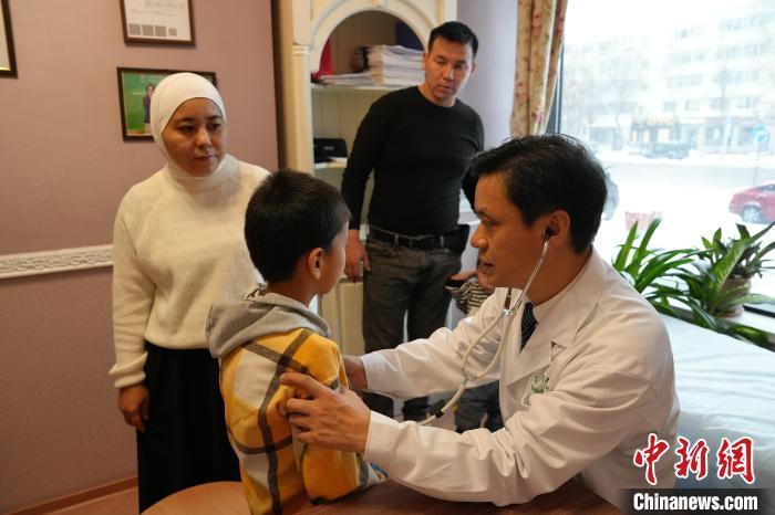 在兒童診室內,一位母親帶著孩子來檢查。母親阿伊古爾說,“我也是名醫(yī)生,在醫(yī)療機構工作,一直比較關注中醫(yī),得知這次有中醫(yī)專家坐診,我提前好幾天預約了名額”。