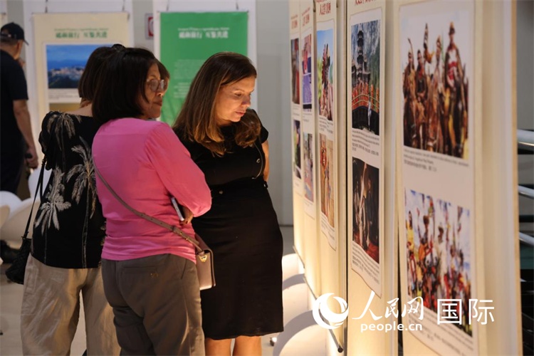圖為當(dāng)?shù)赜^眾在圖片展現(xiàn)場(chǎng)欣賞作品。人民網(wǎng)記者 張志文攝