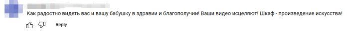 有網(wǎng)友用俄語留言:“看到你和你的祖母身體健康、生活幸福,我太高興了!你的視頻太治愈了!這個衣柜簡直是一件藝術(shù)品!”