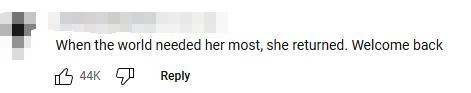 還有網(wǎng)友表示,“當(dāng)世界最需要她的時候,她回來了,歡迎回來?!?/p>