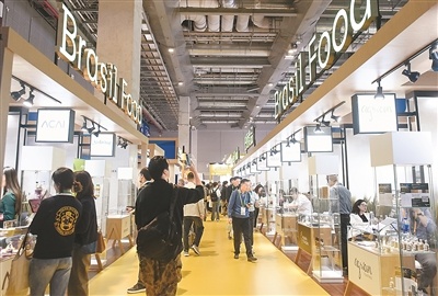 位于第七屆進(jìn)博會(huì)食品及農(nóng)產(chǎn)品展區(qū)的巴西食品展臺(tái)。新華社記者 徐 亮攝