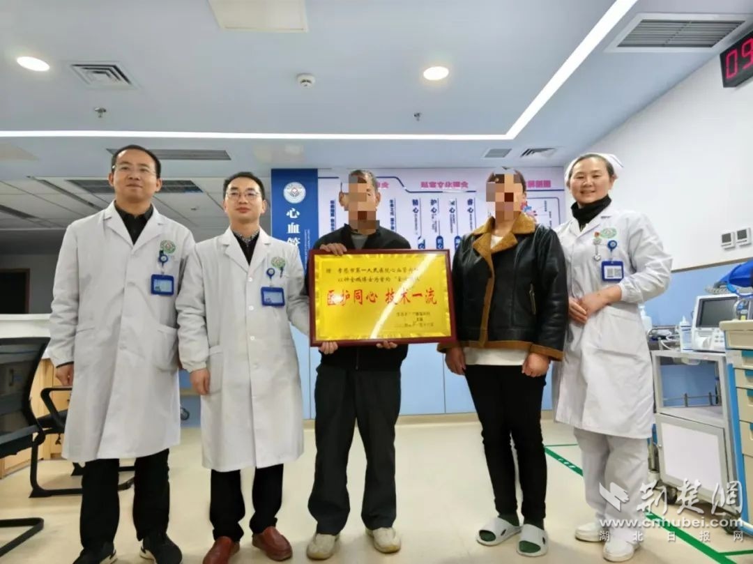 荊楚網(wǎng)(湖北日報網(wǎng))訊(通訊員汪杏子)11月18日,住了一個多月的徐爹爹順利出院,家屬和患者滿懷感激之情,特地贈送一塊寫有“醫(yī)護(hù)同心,技術(shù)一流”的牌匾。這枚牌匾不僅是患者對孝感市第一人民醫(yī)院心內(nèi)科醫(yī)療團(tuán)隊工作的高度認(rèn)可,更是鞭策與鼓勵。