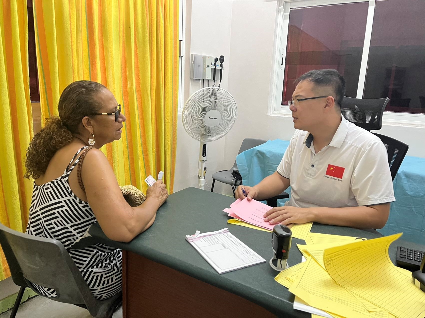 患者在就診。中國援塞舌爾醫(yī)療隊供圖