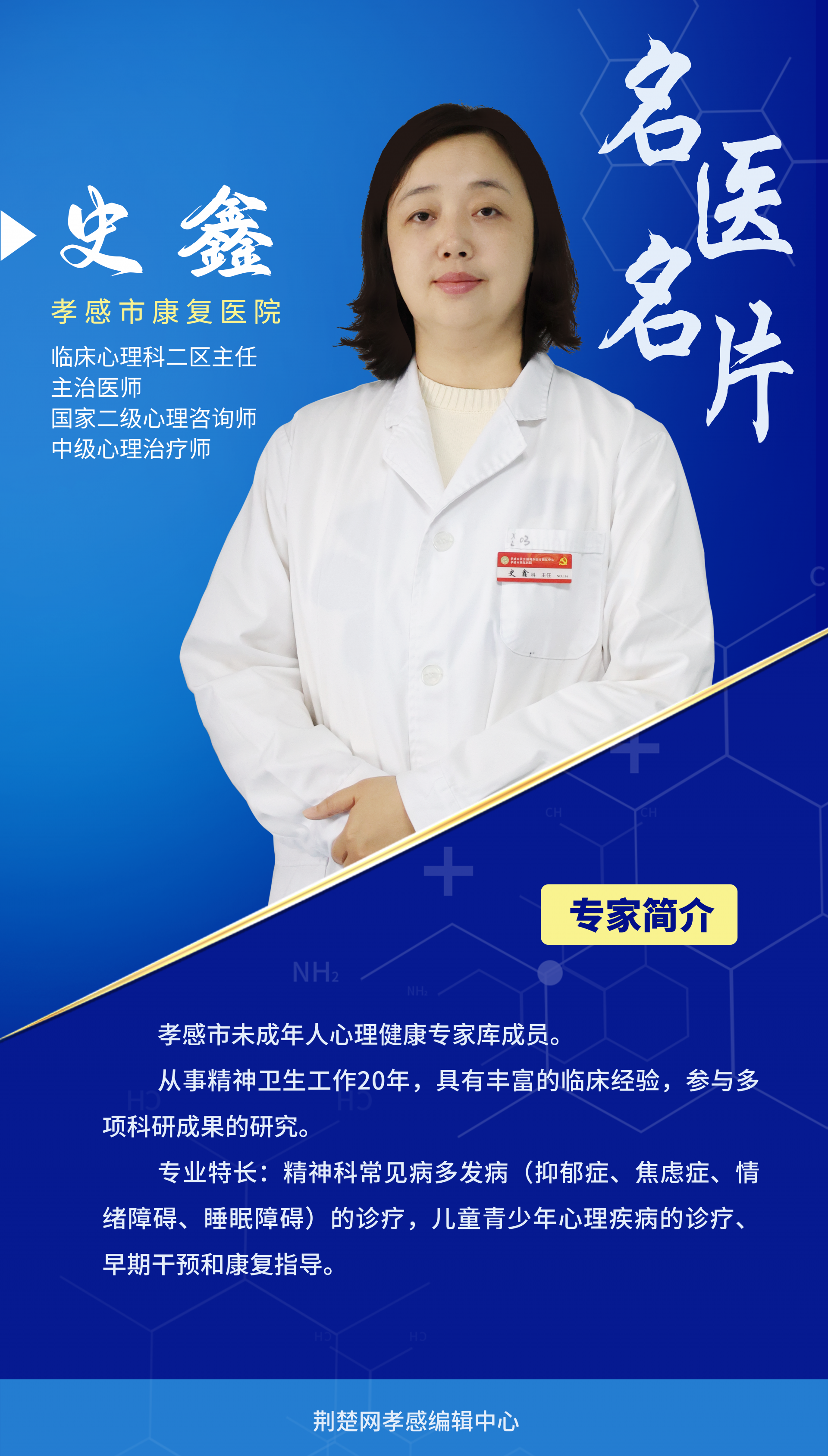 荊楚網(wǎng)(湖北日報網(wǎng))訊(記者葉修頎 通訊員周俊)青少年是一個獨特的群體,在這個發(fā)展階段,孩子身心尚不成熟,容易在學習、生活、人際交往、自我意識等方面,遇到各種心理困惑和問題,引發(fā)心理行為問題。共治心理健康問題,共享心理健康成果。我們特別邀請了孝感市康復醫(yī)院臨床心理科二區(qū)主任、主治醫(yī)師史鑫專家,幫助廣大師生家長解疑答惑。