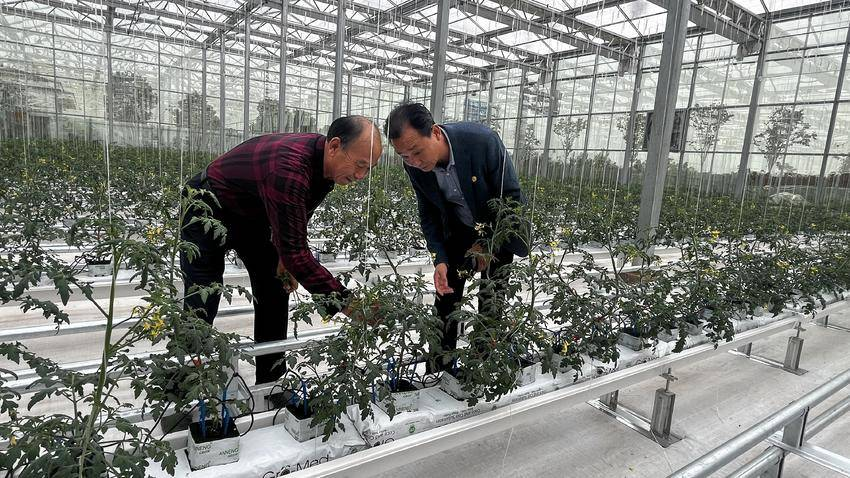 而在新建的玻璃溫室智能棚內(nèi),從山東壽光采購回來的5000多株番茄苗在無土栽培的條件下,僅半個月的時間便已進入開花期?!斑@些番茄苗全部采用荷蘭種植模式,安裝了水肥一體化設(shè)備,并運用了先進的物聯(lián)網(wǎng)技術(shù),實現(xiàn)了全自動化調(diào)溫、調(diào)濕、通風(fēng)、補光、施肥、滴灌。”從山東壽光特聘的技術(shù)員王延祥介紹,這批番茄苗有紅串、黃串及普羅旺斯三個品種,為了提高授粉率,公司還購買了3箱熊蜂進行授粉,一株一年可以結(jié)果20斤左右,60天后便可上市了。