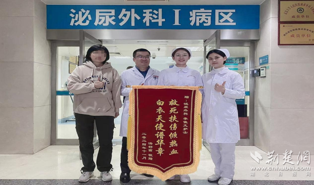 荊楚網(wǎng)(湖北日?qǐng)?bào)網(wǎng))訊(記者葉修頎 通訊員張文杰)11月26日,一面寫(xiě)有“救死扶傷傾熱血,白衣天使譜華章”的錦旗被送至孝感市中心醫(yī)院泌尿外科Ⅰ病區(qū)。錦旗的背后,記錄著一段驚心動(dòng)魄的急救故事。