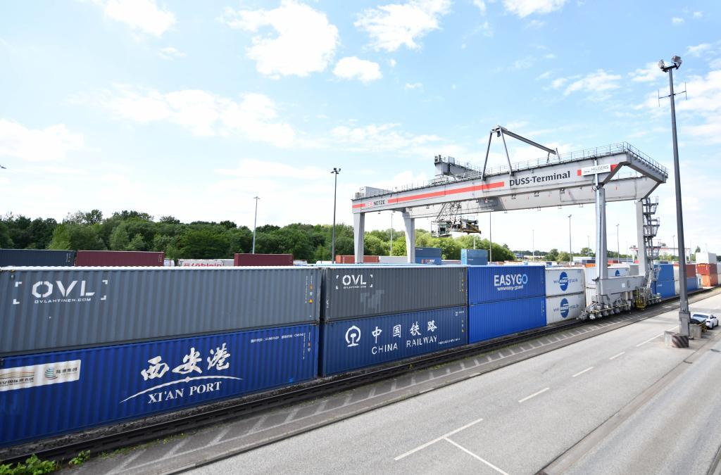 這是2024年5月27日拍攝的德國漢堡-比爾韋爾德DUSS貨運場站,德國漢堡是中歐班列在歐洲的重要站點。新華社記者任鵬飛攝