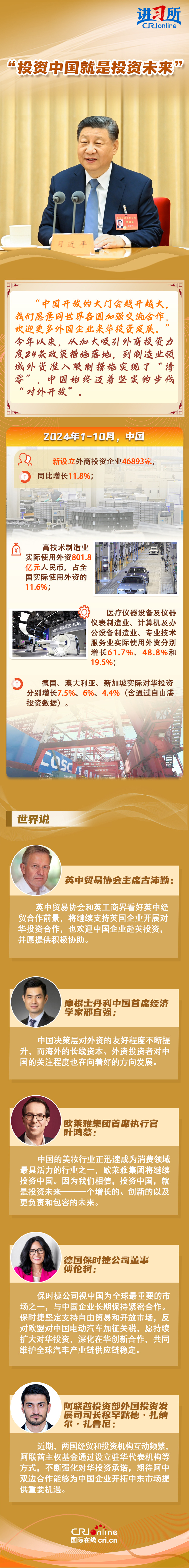 “中國是實干家、行動派。”今年以來,從習近平主席的歐洲之行到拉美之行,再到四天前在北京會見主要國際經濟組織負責人,習近平一直強調,中國的發(fā)展將給世界帶來巨大機遇。據(jù)聯(lián)合國貿易和發(fā)展會議不久前發(fā)布的《世界投資報告2024》中文版顯示,中國吸引外資的結構不斷優(yōu)化、質量不斷提高,多位政商界人士也認為中國是一個非常有前景的市場,投資中國就是投資未來。