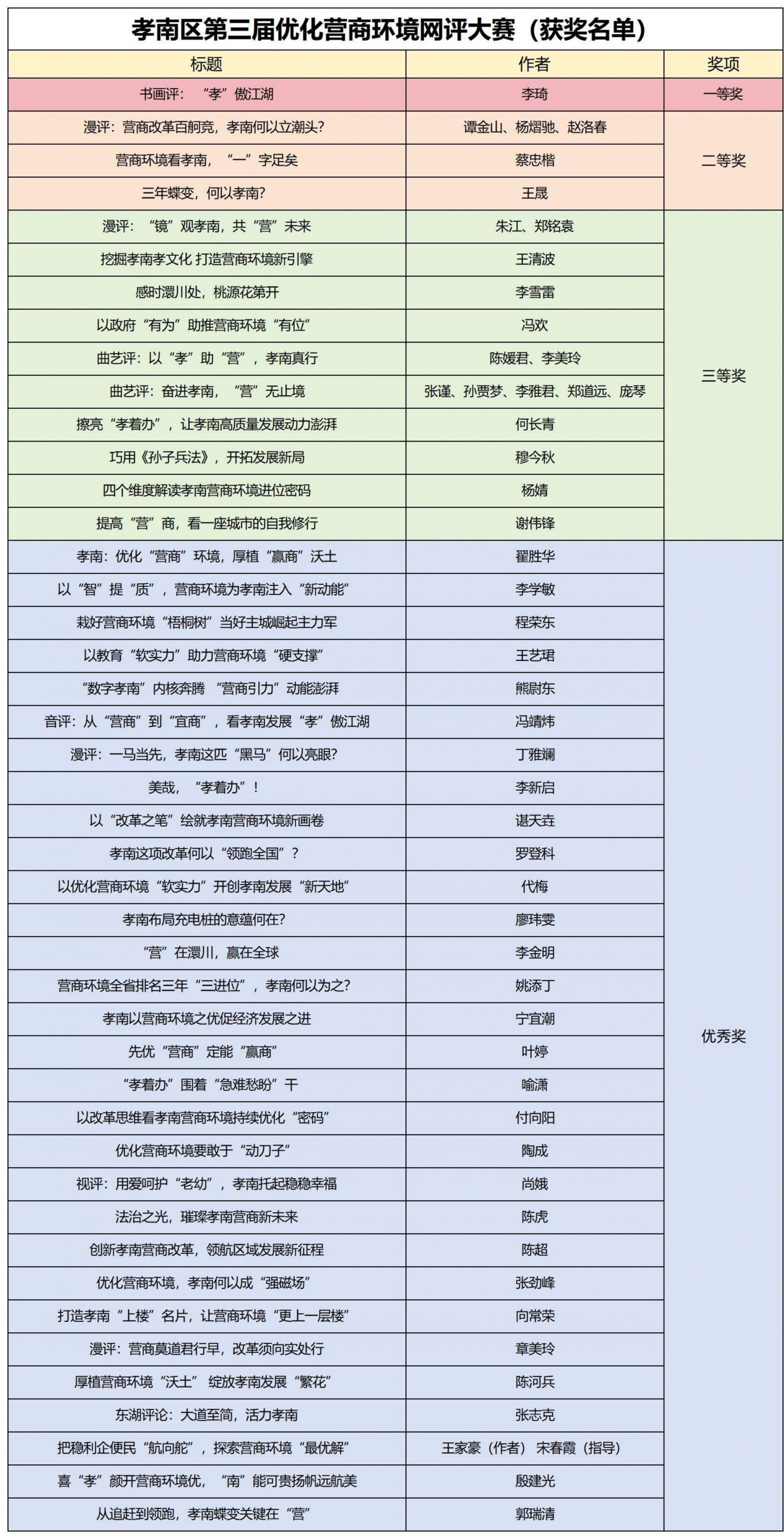 荊楚網(wǎng)(湖北日?qǐng)?bào)網(wǎng))訊(記者黃菲)12月17日,孝南區(qū)第三屆主題網(wǎng)絡(luò)評(píng)論大賽結(jié)果出爐,44件作品分別獲得一、二、三等獎(jiǎng)和優(yōu)秀獎(jiǎng)。