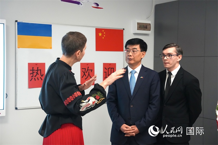 普羅斯庫拉表示,感謝馬升琨大使到基輔第一東方語言學(xué)校參觀訪問。學(xué)校將漢語課程作為特色課程已有60余年歷史,持續(xù)高度重視對(duì)華交流合作,與中國(guó)多所院校保持密切合作關(guān)系。學(xué)校1至11年級(jí)均開設(shè)漢語課程,1100名學(xué)生中有超過600名學(xué)生將漢語作為第一外語。馬升琨大使此行必將進(jìn)一步激發(fā)教師和同學(xué)們漢語教學(xué)熱情,為學(xué)校漢語教育事業(yè)及學(xué)校發(fā)展注入新的強(qiáng)勁動(dòng)力。