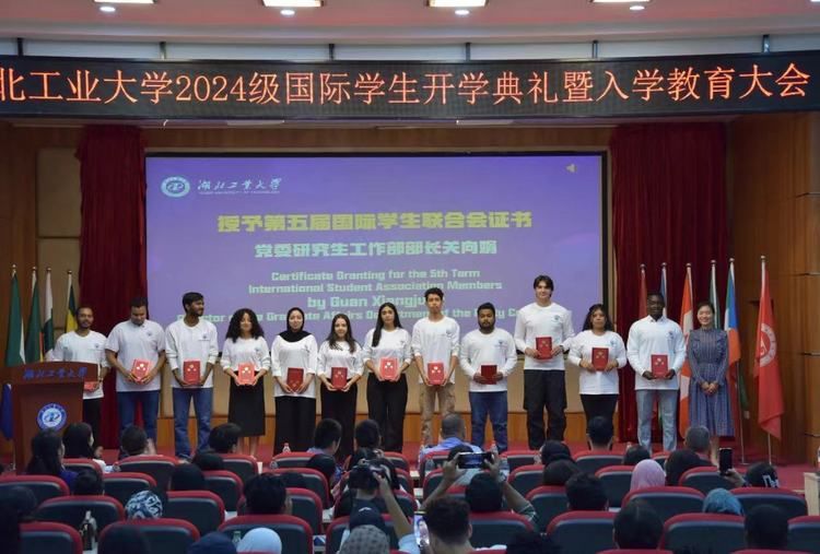 馬可(右四)在競選中脫穎而出,成為新一屆湖北工業(yè)大學(xué)國際學(xué)院學(xué)生會副主席。