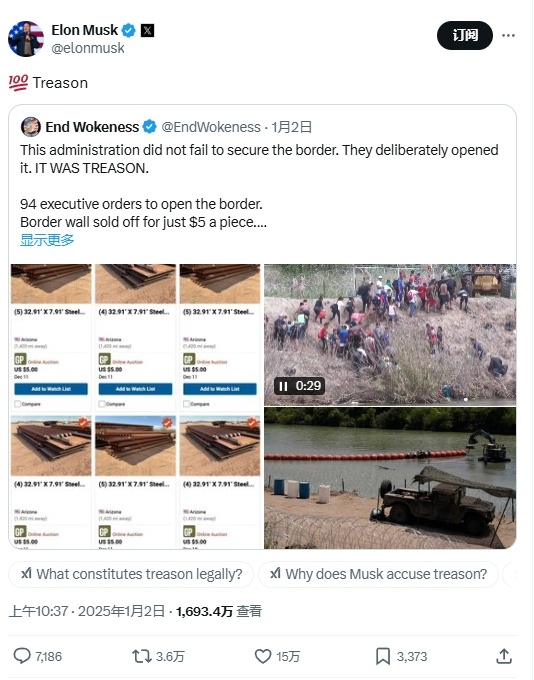 這位用戶總結(jié)道:“這屆政府并沒有確保邊境安全,他們是故意開放邊境的,這是叛國行為?!?/p>