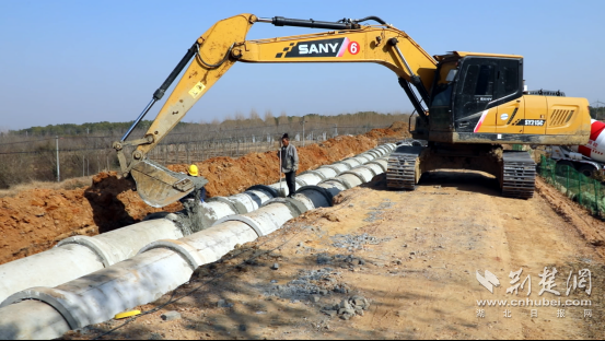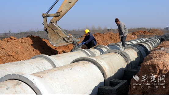 在孝昌縣鄒崗鎮(zhèn)滾子河流域治理項(xiàng)目施工現(xiàn)場(chǎng),大型機(jī)械設(shè)備轟鳴作響,熟練地將水泥運(yùn)送到溝渠的涵管處,工人配合默契,緊張有序地往涵管接縫處進(jìn)行灌漿。目前,該村2.72公里的引水渠修復(fù)工程正在加緊施工。