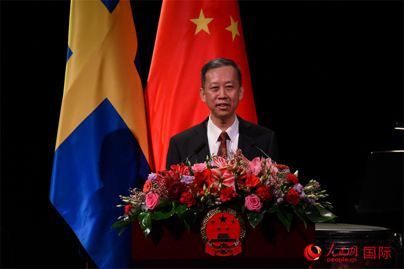 中國駐瑞典大使崔愛民在新春招待會上致辭。人民網(wǎng)記者 殷淼攝