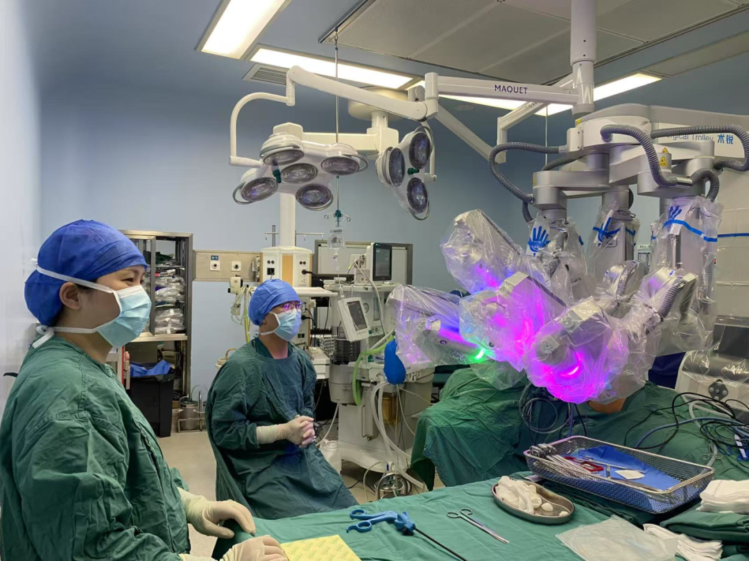 1月14日,兩位在門診檢查中發(fā)現(xiàn)盆腔腫物的患者,分別接受了婦科Ⅱ病區(qū)主任潘谷英團(tuán)隊(duì)和楊娟團(tuán)隊(duì)實(shí)施的機(jī)器人輔助單孔腹腔鏡手術(shù),手術(shù)均順利完成,傷口小且恢復(fù)快。