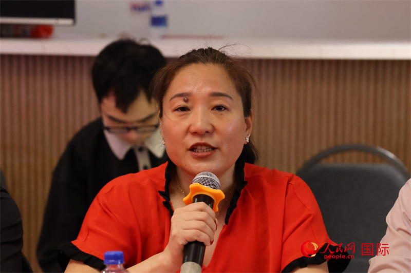巴西華人文化交流協(xié)會(huì)執(zhí)行主席季春苗在座談會(huì)上致辭。人民網(wǎng)記者 陳海琪攝