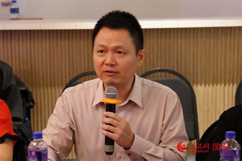 中國(guó)駐里約熱內(nèi)盧總領(lǐng)館副總領(lǐng)事王尉育在座談會(huì)上致辭。人民網(wǎng)記者 陳海琪攝