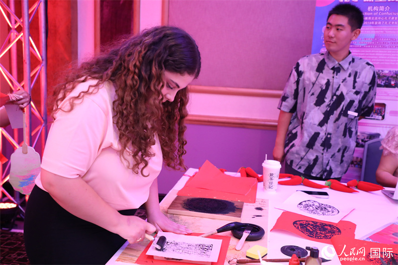 與會(huì)嘉賓體驗(yàn)中國(guó)書(shū)法。人民網(wǎng)記者 戴楷然攝